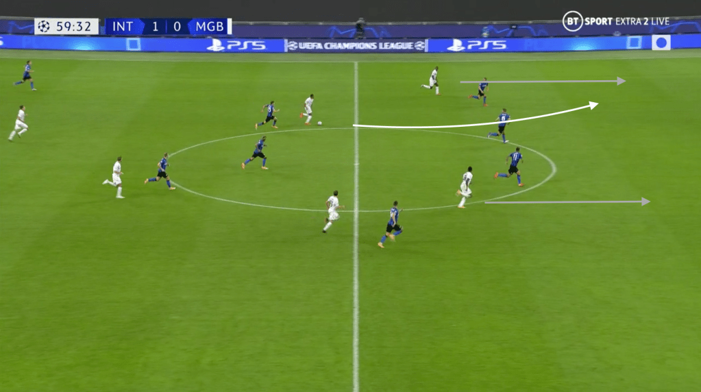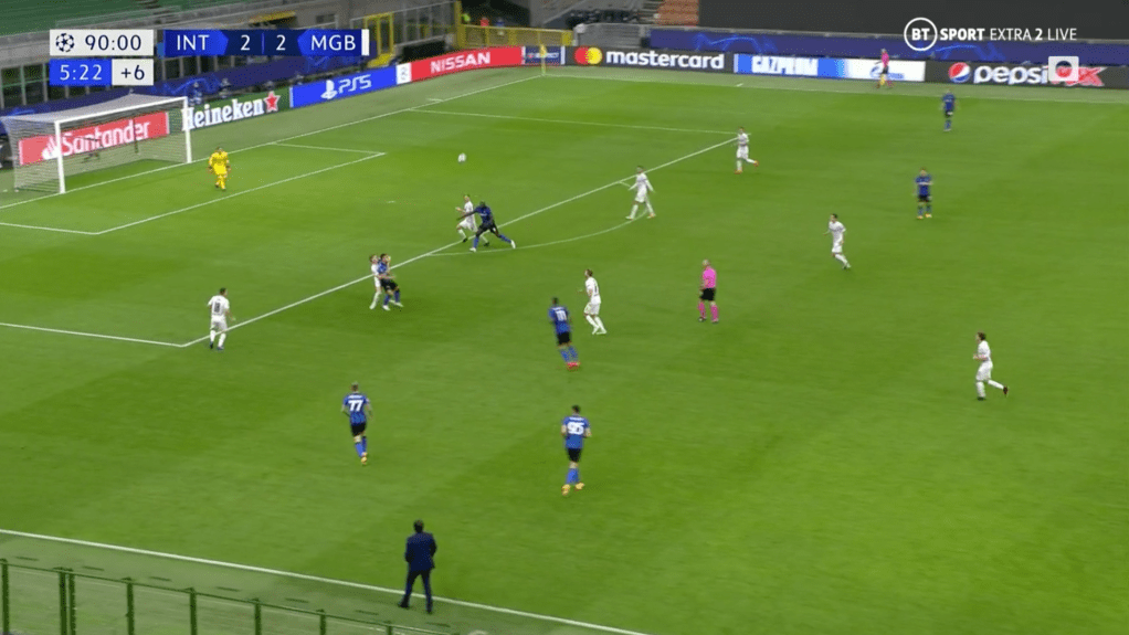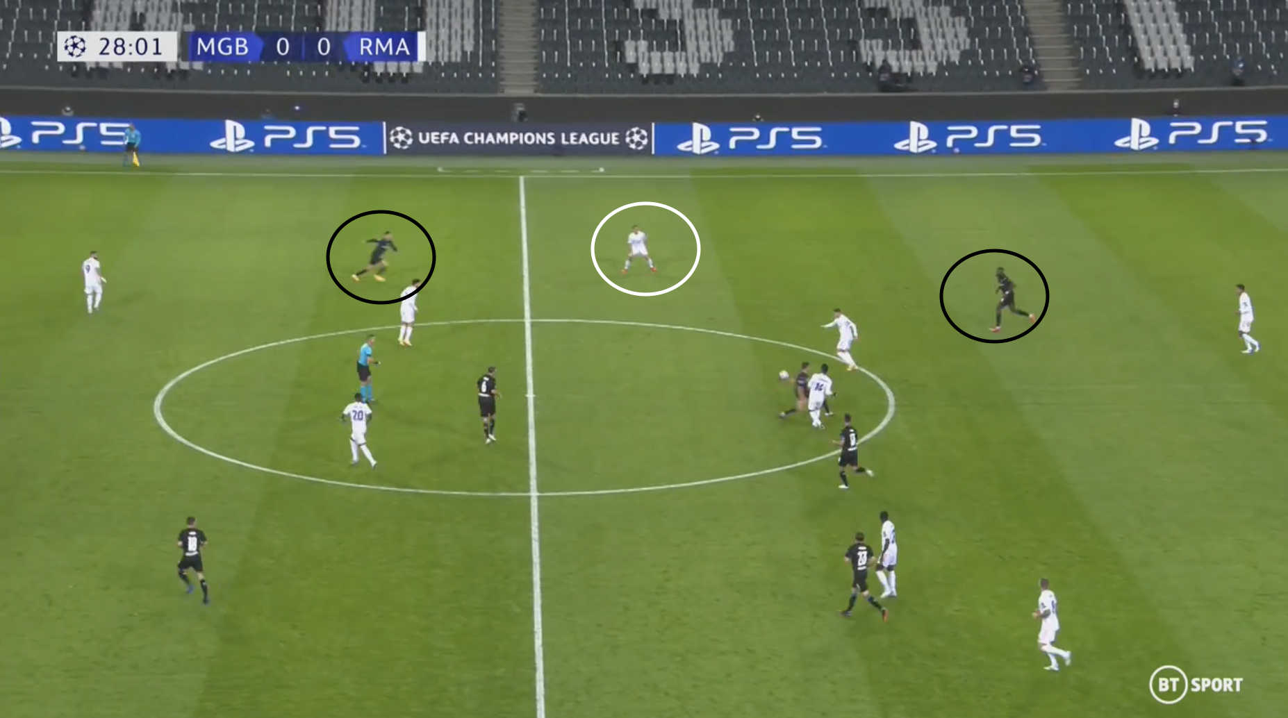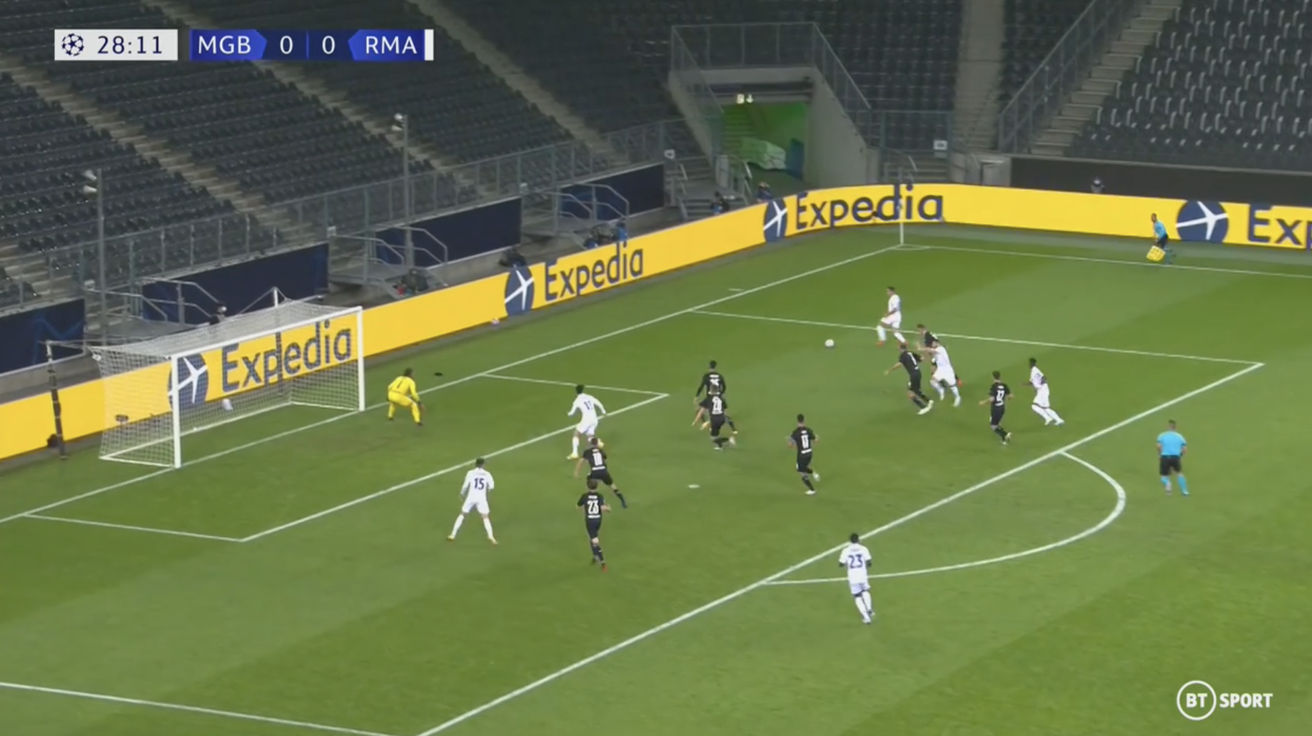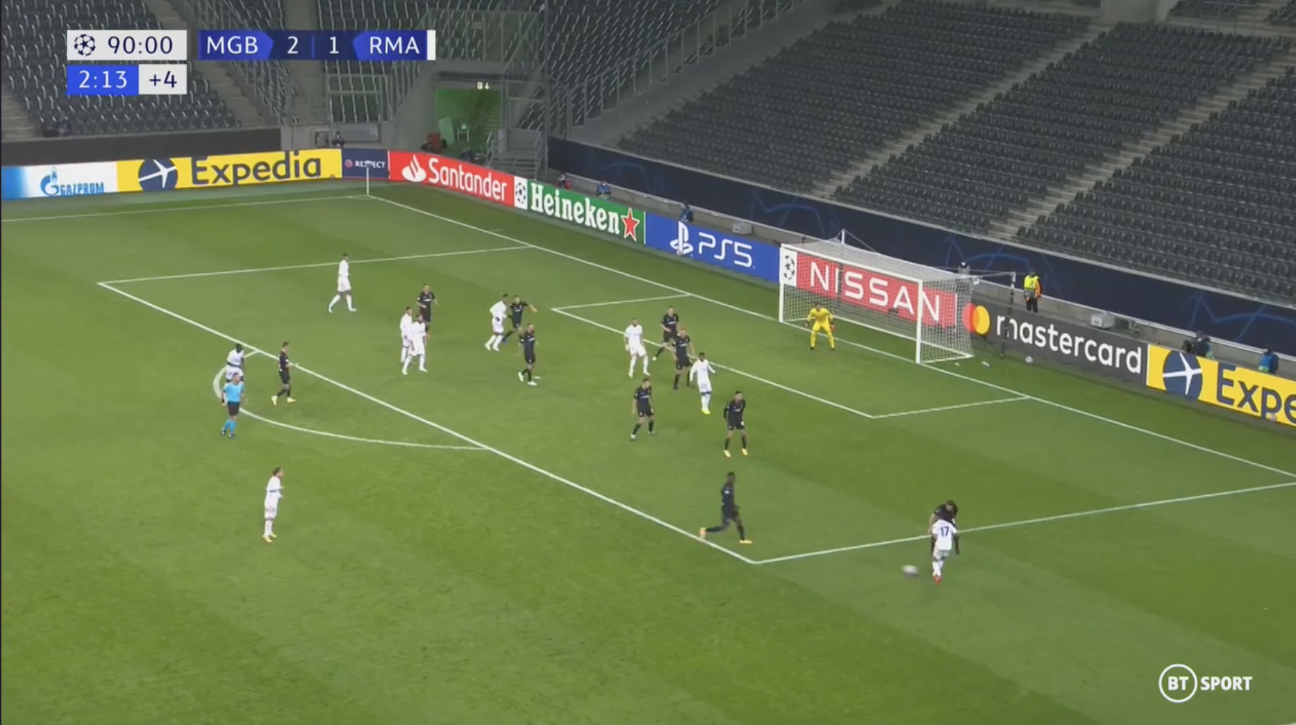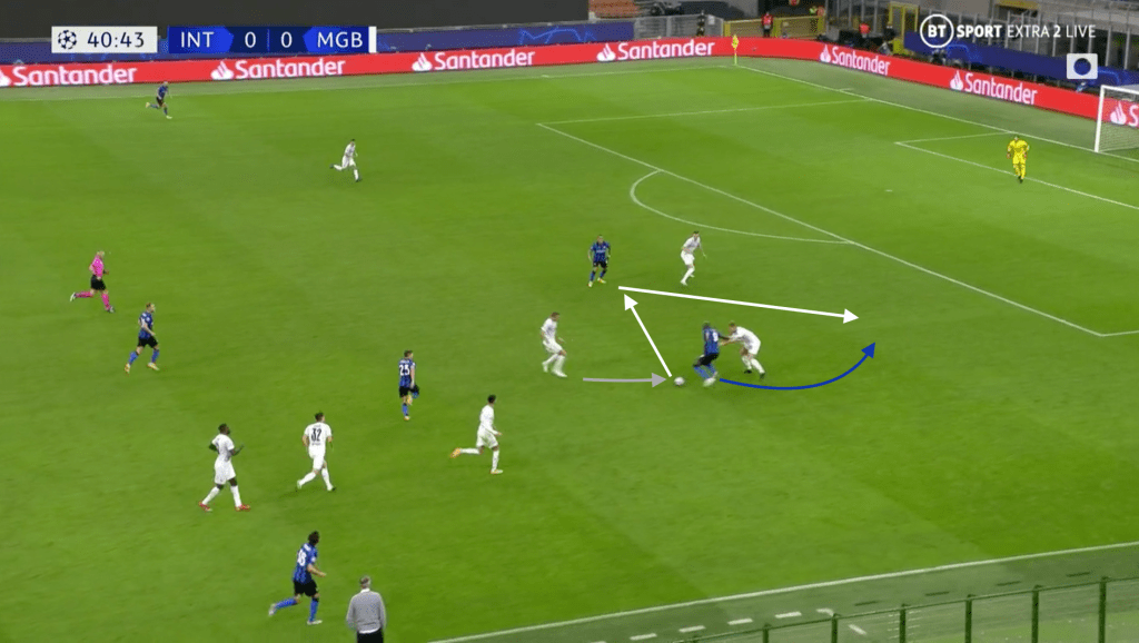 That means he can spend a lot of time positioned higher up the pitch, in the left-wing slot, and Gladbach still maintain a compact defensive shape, all thanks to his defensive work-rate.