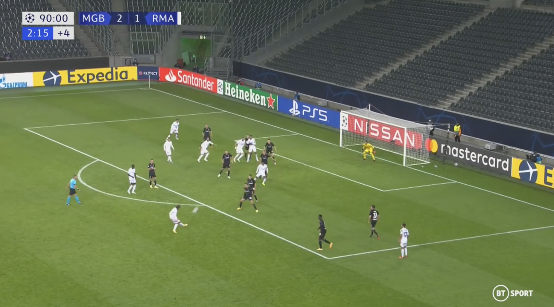 Aside from a freakish penalty for handball, which Gladbach’s own Twitter admin attributed to a Neuhaus “brain fart”, and a well taken long-range shot from Goretzka from Bayern’s own counterpunch, where an unsighted Sommer was caught cold, Bayern did not create much. Their best moments came from Gladbach’s own struggles playing out from the back, rather than Bayern’s success in building up attacks from deep. And though Bayern had 67% possession, Sommer had very little to do, and, taking out the bizarre penalty, an xG of only about 0.6.